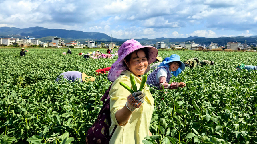 “以前种一茬,现在种两茬,每亩收入翻了一倍多!”在牟定,除每亩约15000元的种植收益外,蚕豆采摘、分拣、打包等环节每天创造100多个季节性岗位,留守妇女和老人日均收入80-100元,人均月增收近3000元,累计带动劳动收入超400万元 。数据显示,近两年来,牟定县销往上海江桥批发市场的大粒蚕豆销售额突破1.4亿元,综合产值超2亿元。